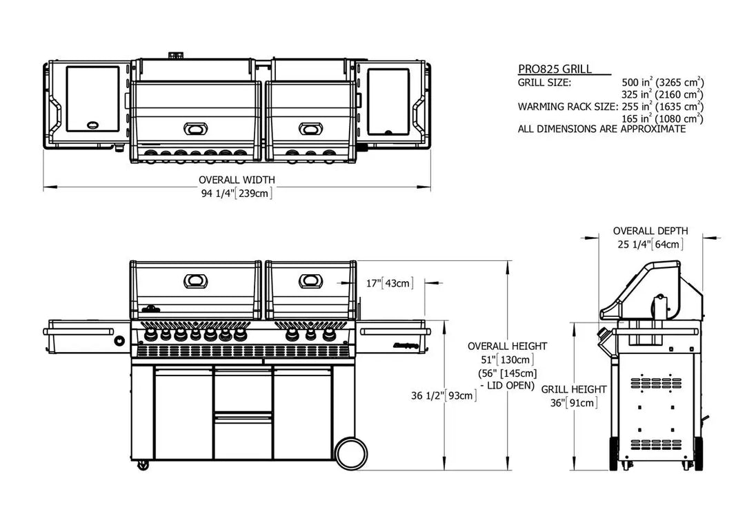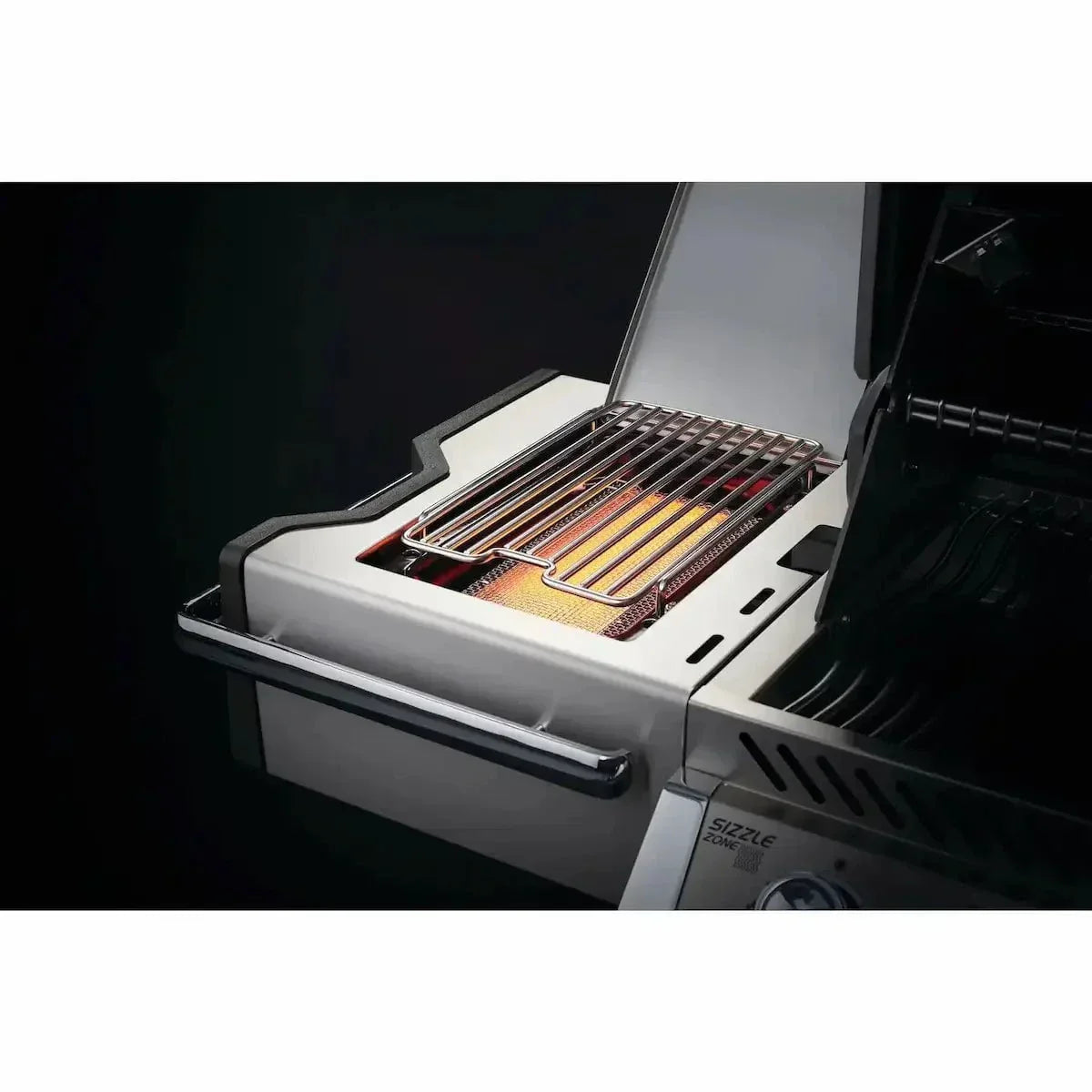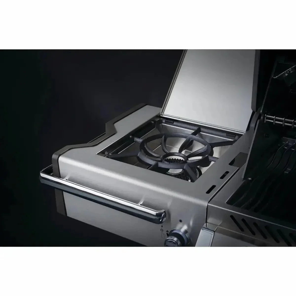 Equipped with SafetyGlow control knobs that illuminate red during use and can be customized to display various colors when not in use, the Prestige PRO models prioritize both safety and aesthetic appeal. Additionally, these grills feature proximity lighting that projects the Napoleon logo onto the ground in front of the grill, adding a touch of sophistication and convenience to nighttime grilling sessions. Built to meet the demands of discerning grill enthusiasts, the Prestige PRO825 combines innovative features with superior performance to elevate your outdoor cooking experience.