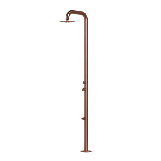 Freestanding outdoor shower with pressure balance valve, two-way diverter, foot wash, and rain shower head made of 316 marine grade stainless steel in PVD copper finish.Regular price $4,580.00Regular price $4,580.00 -